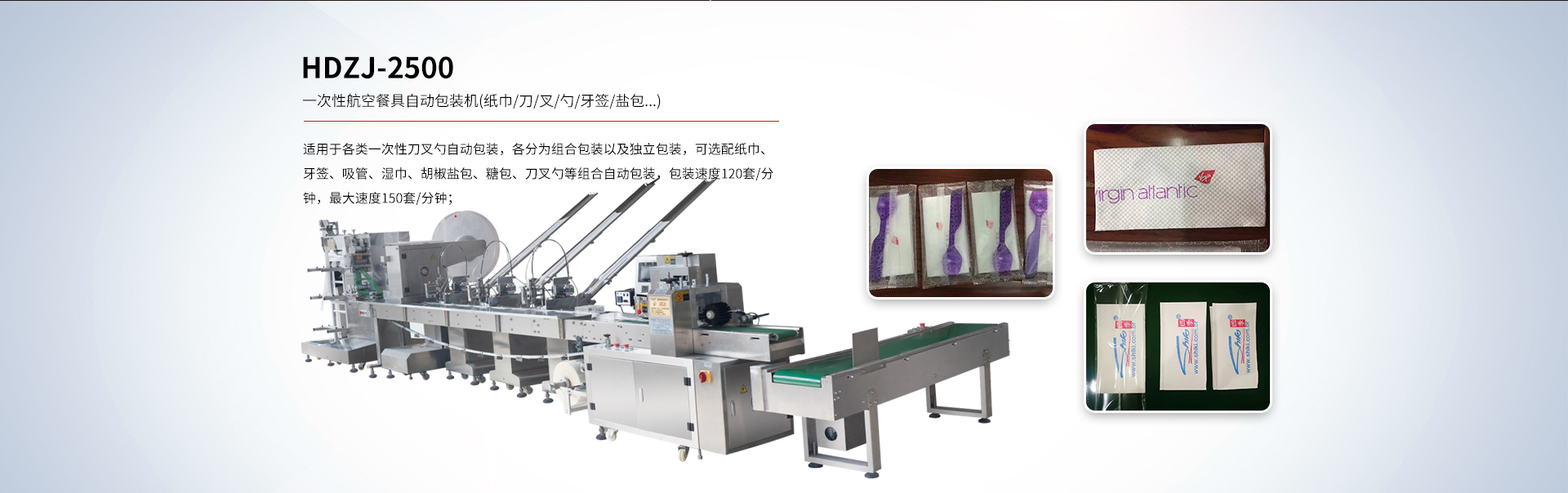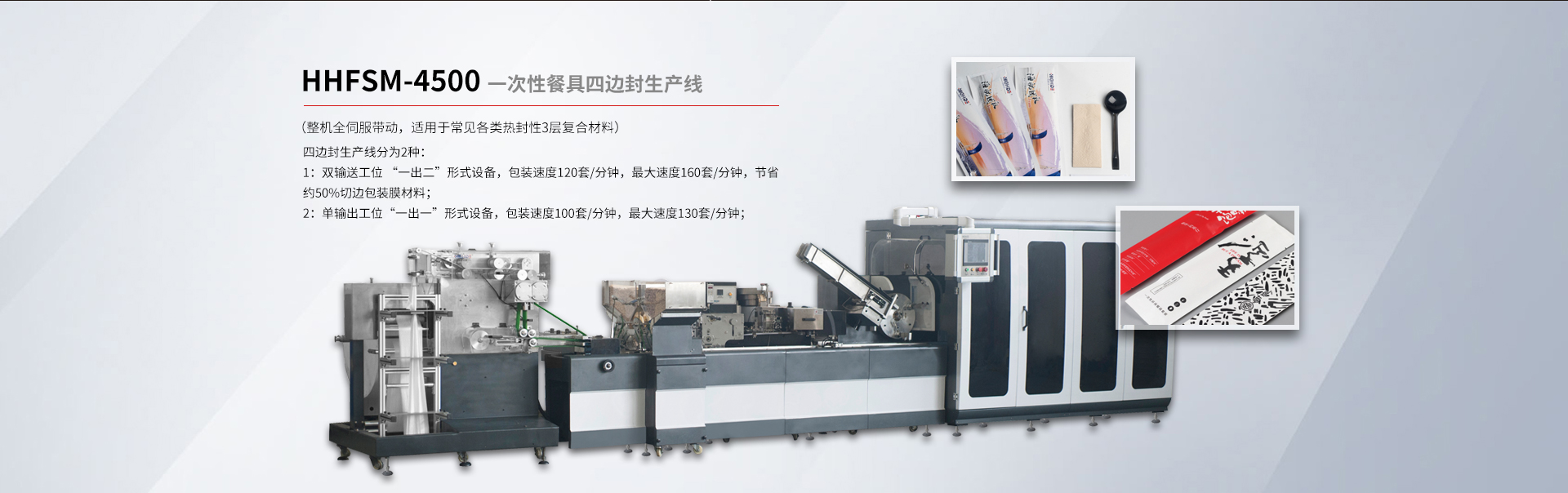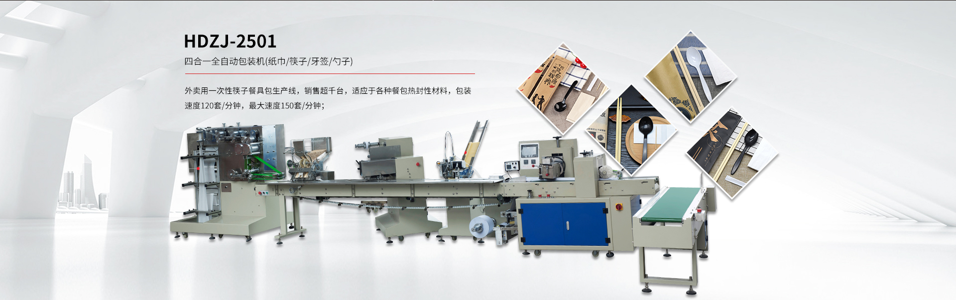 貴司專注于研發(fā)一次性紙巾筷子餐具包生產(chǎn)線、紙巾刀叉航空餐具包裝生產(chǎn)線、一次性餐具套裝四邊封生產(chǎn)線、塑料杯(碗)、吸管全自動(dòng)點(diǎn)數(shù)自動(dòng)包裝機(jī)及五金(塑料)制品包裝機(jī)等各類包裝機(jī)。